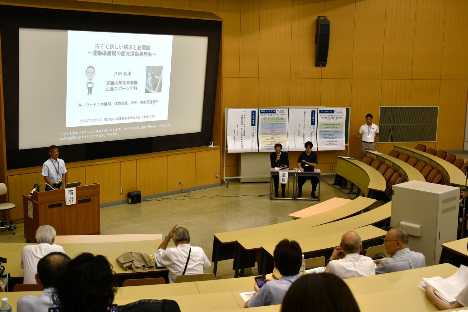 ![]() 2025年7月12日(土)特別シンポジウム: 座長兼シンポジストの酒井大輔先生(東海大学医学部教授)のご講演 | ![]() 2025年7月12日(土)シンポジウム3: シンポジストの松下宗洋先生(東海大学体育学部生涯スポーツ学科講師)のご講演 | ![]() 2025年7月12日(土)ポスター会場: 2日間、活発な討論が繰り広げられました! |